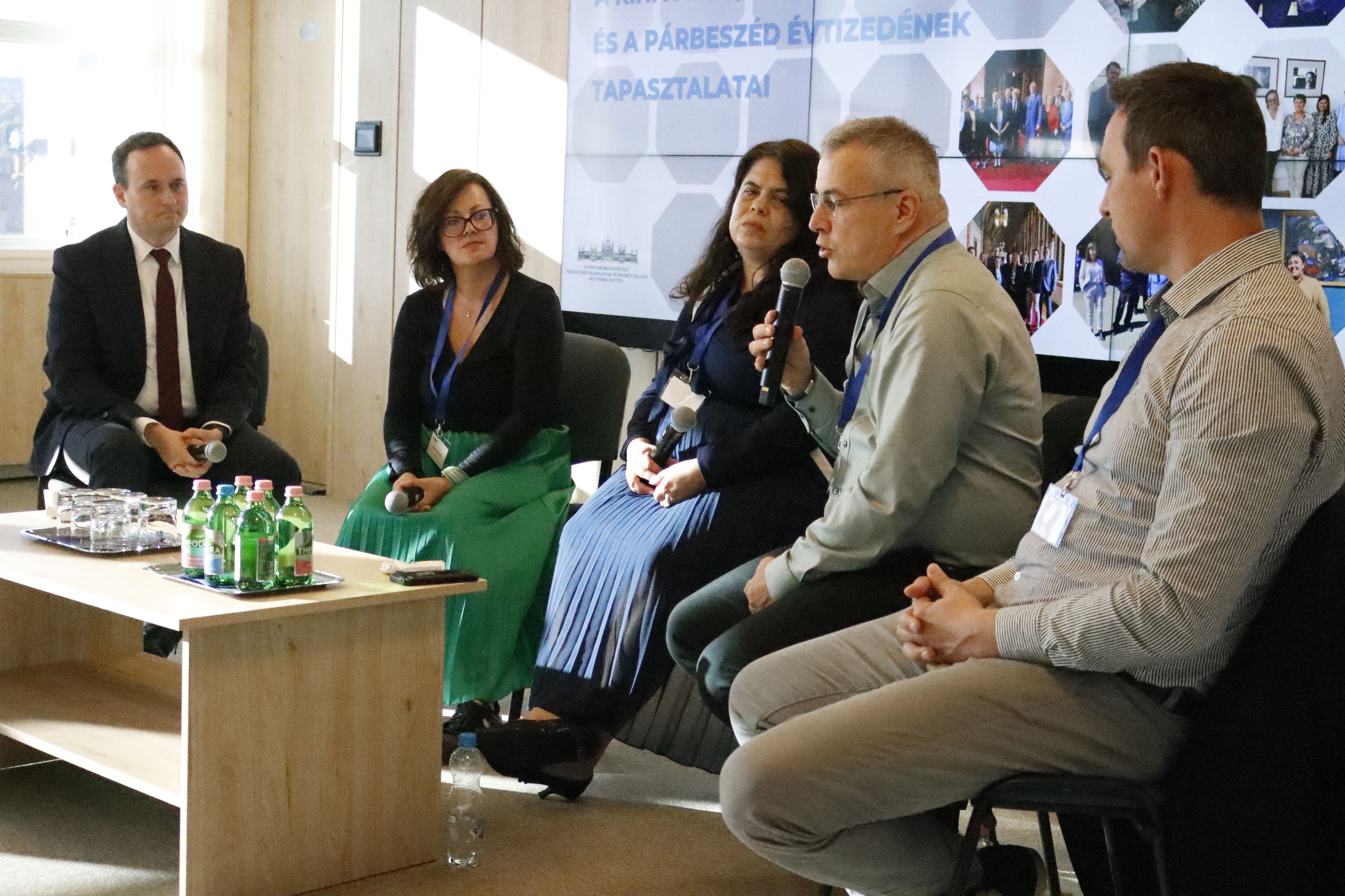 Following his presentation, Tamás Török, Head of Secretariat and Head of Department at the Minority Ombudsman's Office, led a discussion with Tamás Eperjesi, Vice-President of the Small Region Developers' Professional Association, Adél Kegye, Chair of the Board of Trustees of the Rosa Parks Foundation, Edina Tordai, Roma Programme Manager at the Tom Lantos Institute, and Gergely Szanyi, Development Director at the Baptist Charity Service. Following the introductions, the discussion focused on the complex issue of school segregation affecting Roma children, with particular emphasis on the often-contradictory role played by church-run institutions. The participants, representing different perspectives, agreed that although the creation of inclusive, integrated education has been declared a legislative and regulatory objective, its practical implementation involves balancing numerous interests that are often in conflict with each other. It is a huge challenge for school leaders to strike a balance between Roma parents who want their children to have access to inclusive education that gives them opportunities, parents belonging to the majority society who expect high-quality education, preparation for further education and talent development, families who expect church-related and religious education, and those who emphasise the right to freedom of religion and free choice of school. The round table concluded that all this is only possible if there are committed professionals, "local heroes" who, through persistent work and tireless dialogue, are able to achieve high-level policy goals in line with the needs of the community, regional conditions, institutional frameworks and demographic processes.