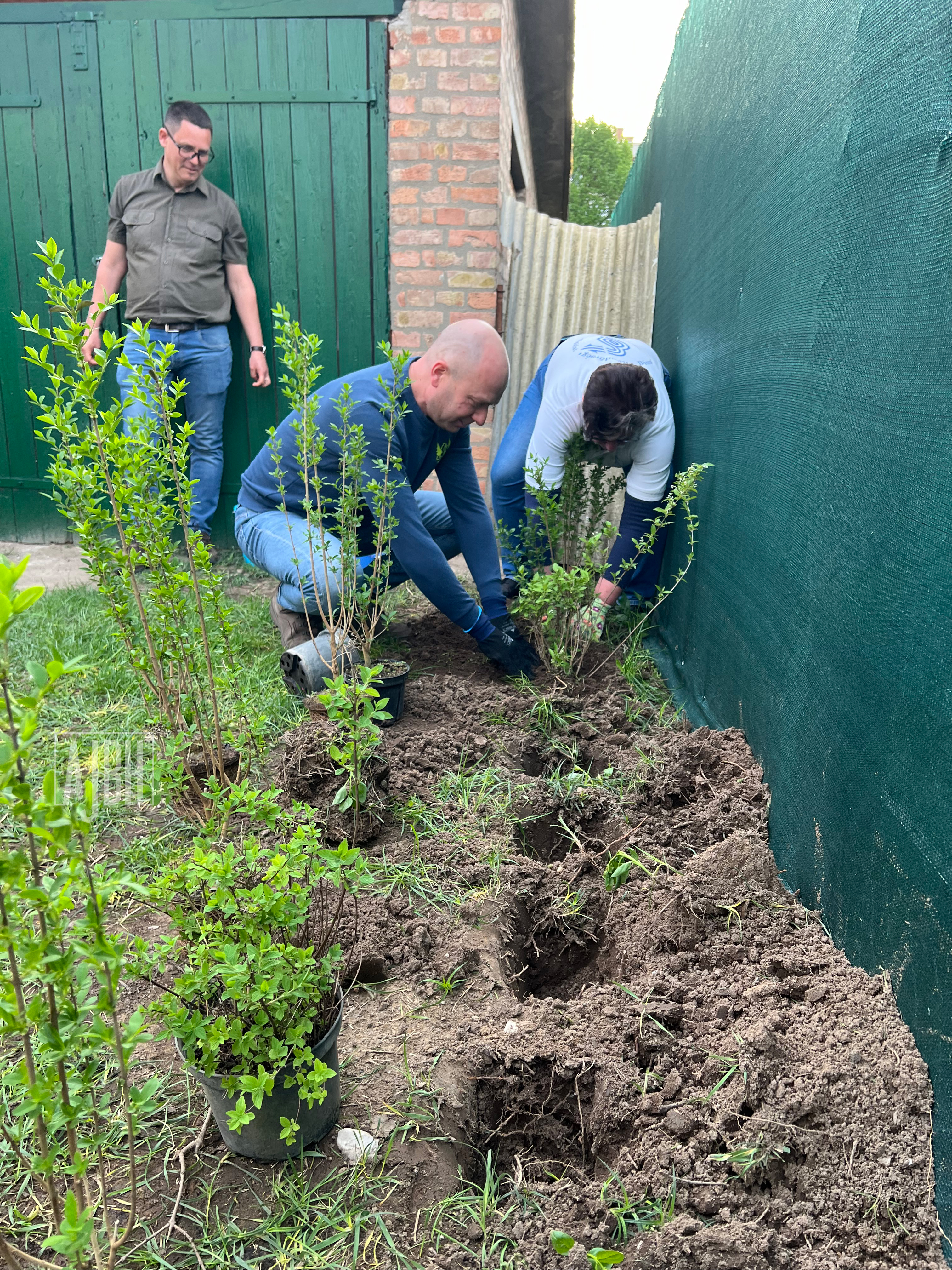 The modernisation of the Balassagyarmat-based Ipolypart Fészek Children’s Home, which is a part of the ombudsman’s children’s home renovation programme, continued with a landscaping effort. On 9 April 2024, the staff members of the Nógrád County Police Headquarters, the Office of the Commissioner for Fundamental Rights of Hungary, as well as the foresters of Ipoly Erdő Zrt planted as many as 250 shrubs, including privets, spiraeas, lily-of-the-valley shrubs and butterfly bushes. The shrubs were provided by the Nyírjes Non-Profit Organisation for Nature Conservation and Education.